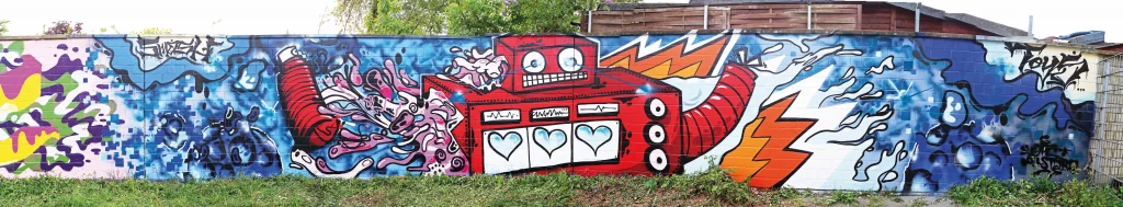 Der Jugendclub Ammerweg in Unterrath überlässt unserem Verein in unregelmäßigen Abständen die Wände um seinen Parkplatz herum zum Veranstalten einer Graffiti-Jam.
