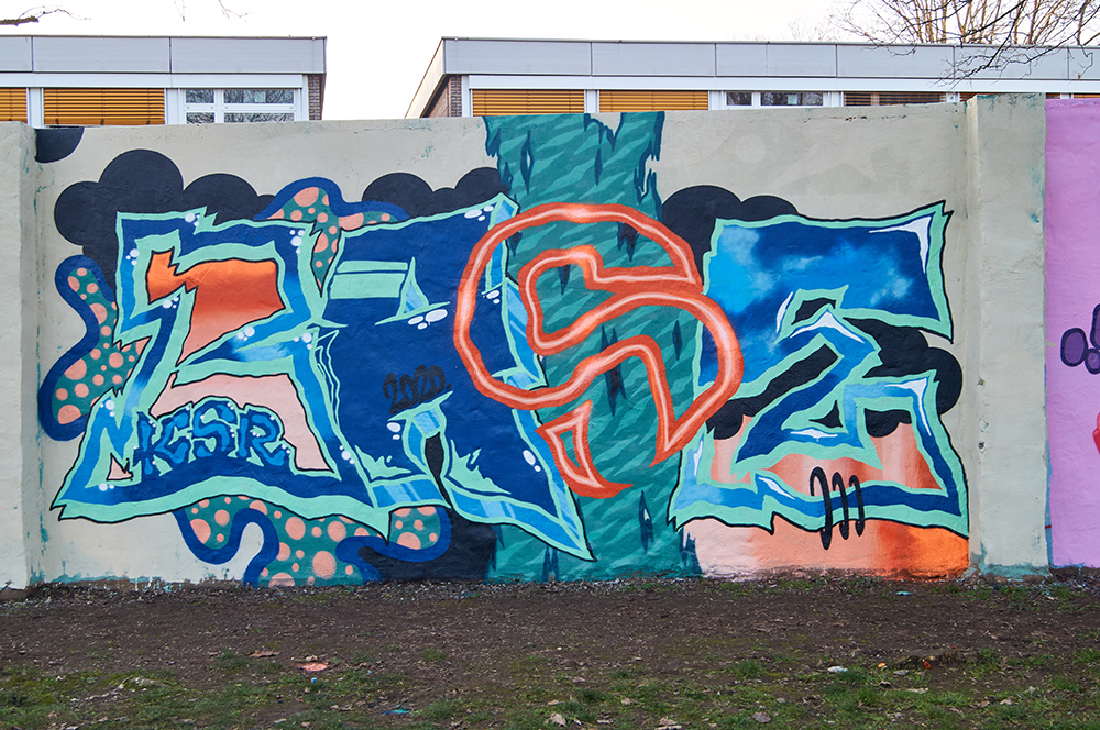Eine kleinere Wand, die im Sonnenpark an der Schmiedestraße liegt. Die Flächen sind durch die Wand vorgegeben (ca. 4x3m). Gemütliche, grüne Hall, die man sich mit Familien (Spielplatz) teilt.